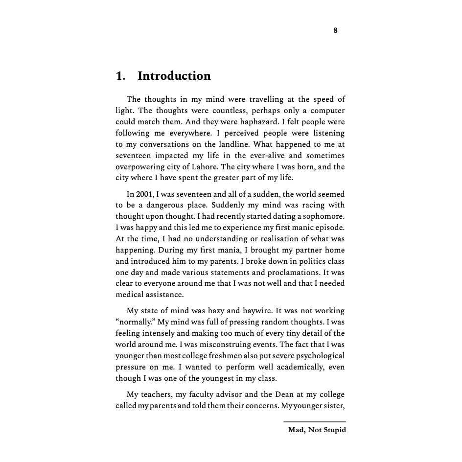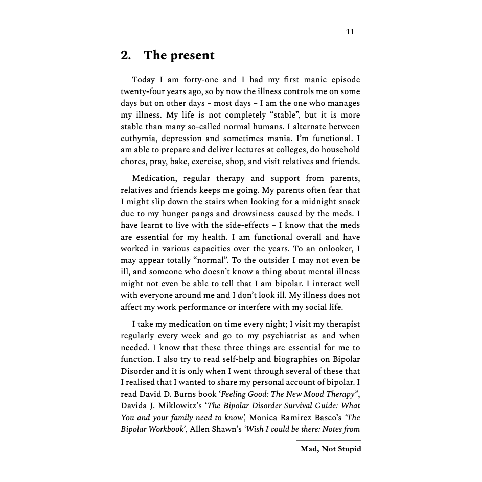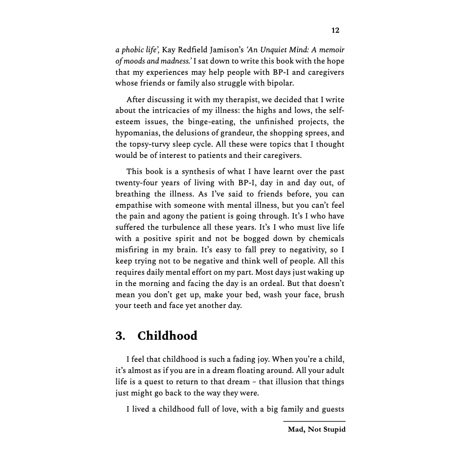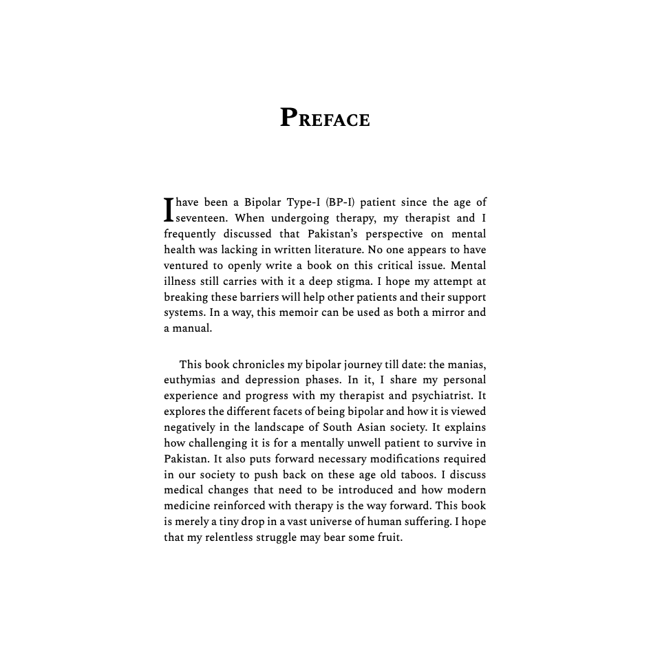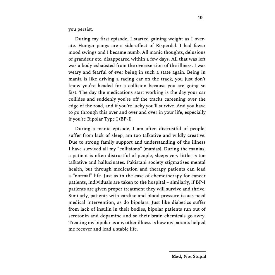 This is a straightforward, honest, and good book on Bipolar Disorder. Highly recommend for someone living with Mental Disorders in Pakistan.