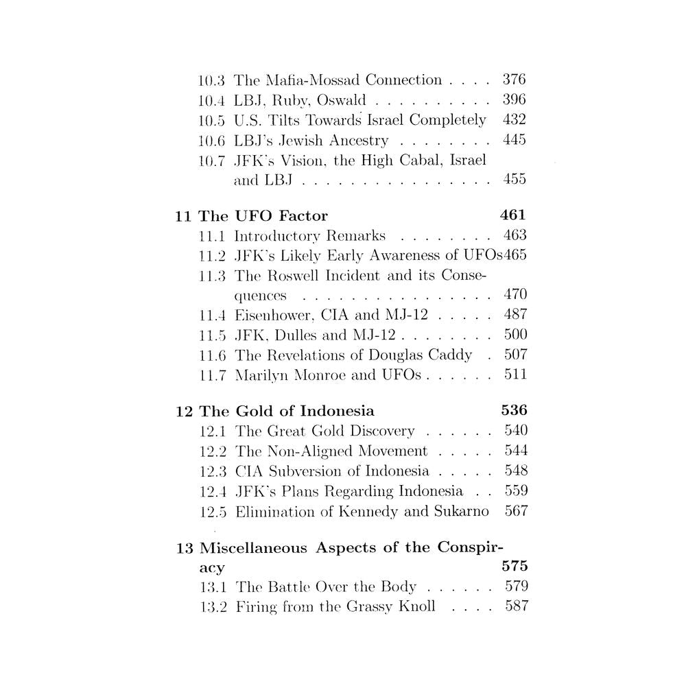 The present book covers almost all aspects of the JFK assassination. It also deals with some of the important assassinations of those who suspected the CIA, and were pursuing the matter of JFK assassination. These assassinations were mostly carried out by the CIA. James Jesus Angleton, the head of the CIA counter-intelligence wing, was extremely close to the Mossad, and was involved in ordering these assassinations, apart from overseeing and coordinating the JFK assassination.