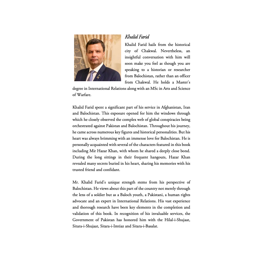 With those words, I invite you to explore the saga of this charismatic Baloch leader Mir Hazar Khan aka ‘Waddoo’; as narrated by his grandson Bevergh and his longtime friend Khalid Farid. I am a mere writer who put that into words.